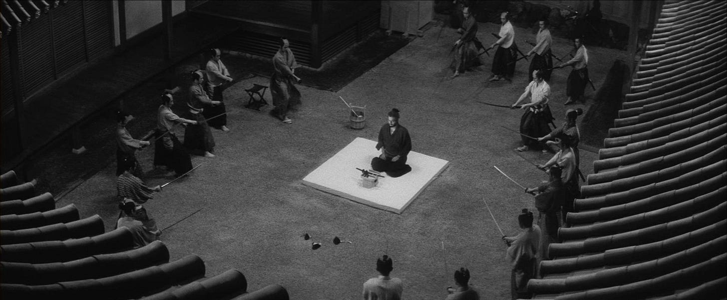 An old rōnin named Hanshirō shows up mysteriously at the manor of a local feudal lord & requests to commit seppuku, the ancient suicide ritual, before an audience of samurai.